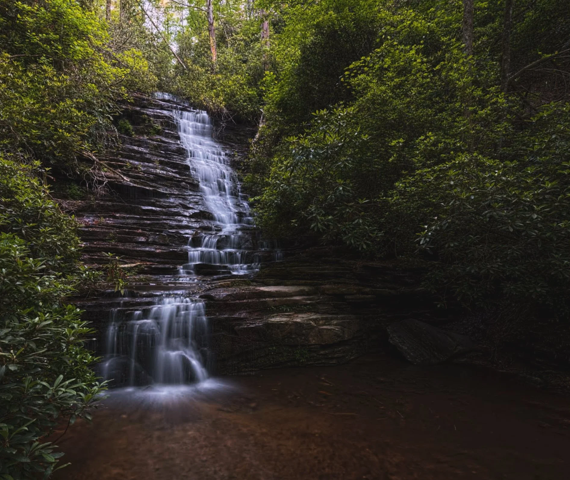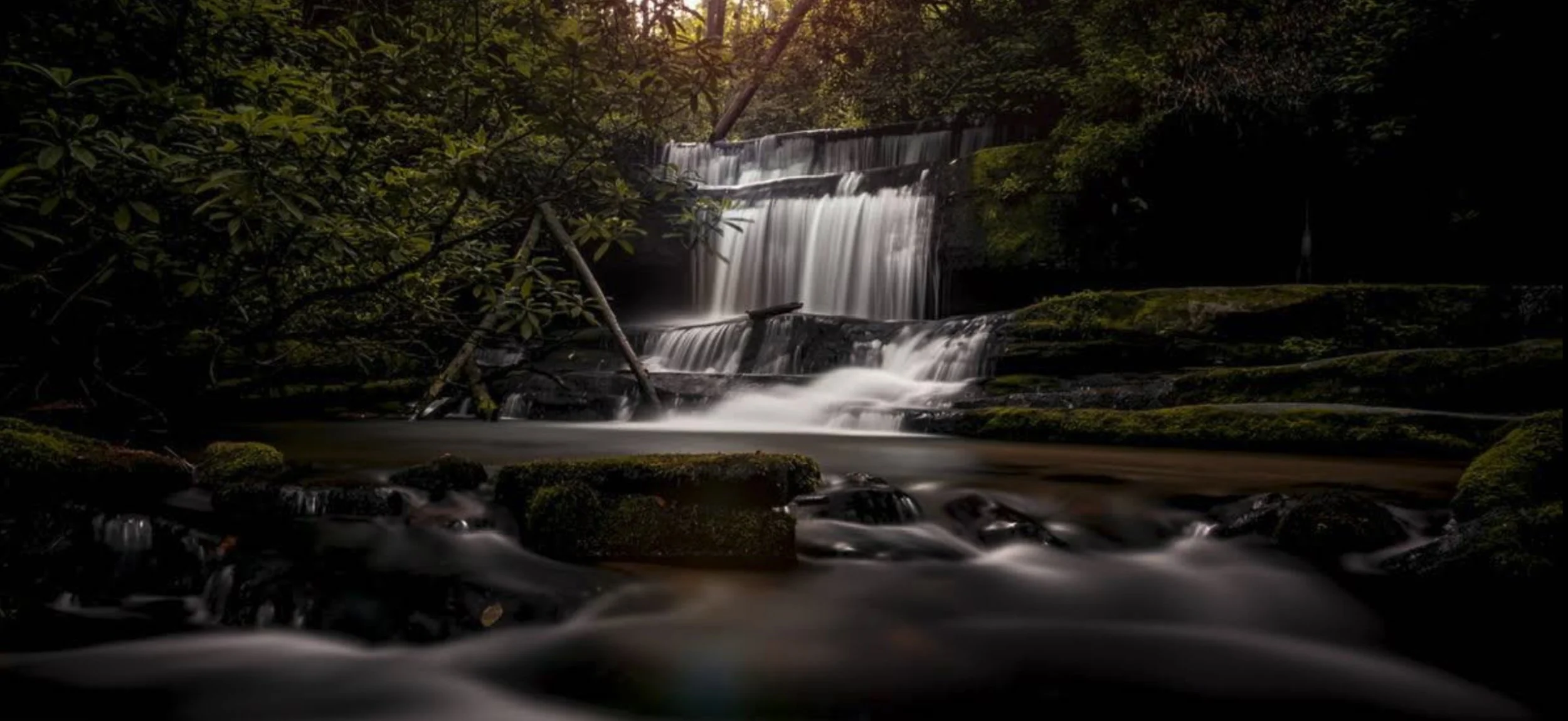 Near the historic lakeside town of Lakemont, the Angel Falls Trail explores two tumbling waterfalls, Panther Falls and Angel Falls, in a beautiful creek valley.